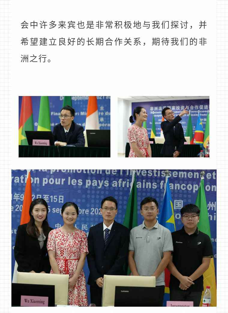 2021年9月6日,乐鱼网页版登录入口-乐鱼(中国)应福建省对外经济合作中心邀请,由非洲大区市场总监吴小铭作为代表与包括25位来自非洲法语国家经贸、投资促进政府部门官员及企业管理人员就疫情下中国企业如何应对机遇与挑战展开讨论。